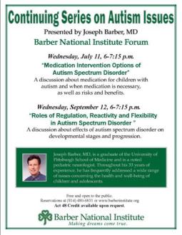 For those of you who reside in the Erie area, the Barber National Institute and Joseph Barber, MD are giving you a great opportunity to get your medication questions answered!  You are invited to the BNI Forum this Wednesday, July 11, 6-7:15 p.m. for Dr. Barber’s presentation “Medication Intervention Options of Autism Spectrum Disorder.” Dr. Barber, a pediatric neurologist will discuss medication for children with autism and when medication is necessary, as well as risks and benefits.