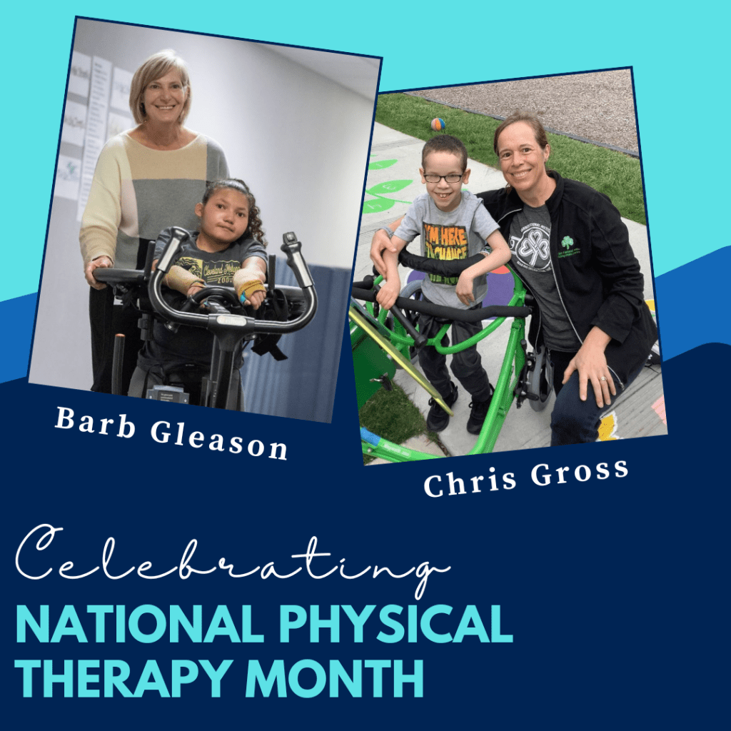 National Physical Therapy Month is celebrated each October, and I would like to highlight our two incredible physical therapists Barb Gleason and Chris Gross who provide the very best hands-on physical therapy and a wide range of resources to our children and their families throughout the year. Physical therapy provides our students with so many benefits, including improved mobility and movement, critical muscle strengthening, and the ability to experience exciting activities such as riding an adaptive bike.